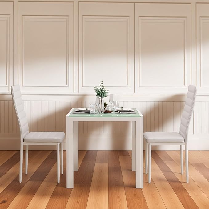 - Easy to Maintain: This 3-piece dining table and chair set features a stylish glass tabletop. The smooth surface makes it easy to clean up after food spills. Just wipe it with clean water to restore it to a clean state, making it easy to keep the tabletop bright and beautiful.