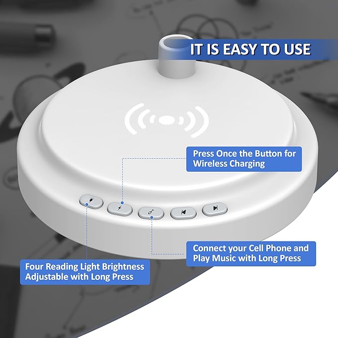 - 【3 IN 1 BLUETOOTH SPEAKER WIRELESS CHARGING DESK LAMP】 This LED lamp is not only a stylish table lamp, but also equipped with 15W wireless charging and 5W Bluetooth speaker. Lets you effortlessly charge your phone while working or studying. You can use this Bluetooth speaker wireless charging desk lamp while reading, studying, working and sleeping.