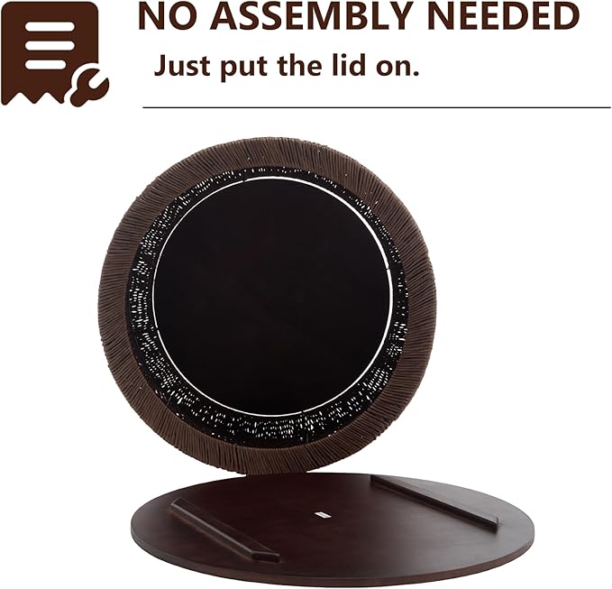 Kmax 30" Round Wood Nesting Coffee Table Set of 2 Handcraft Woven Rope Sofa Tables Both with Storage Drum End Table Side Table for Small Space Living Room No Assembly Needed, Dark Brown