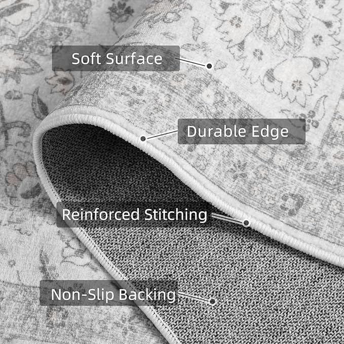 - [Washable & Easy to Clean]: Our light grey rugs are machine washable and easy to maintain. Quickly air-dry due to the thin pile design. Use a vacuum cleaner, or broom, or wipe several times per week or deep clean regularly on the situation. Product note: When you receive a new throw rug with a crease, you could try rolling it up the opposite way for two full days, then laying it flat on a clean floor.