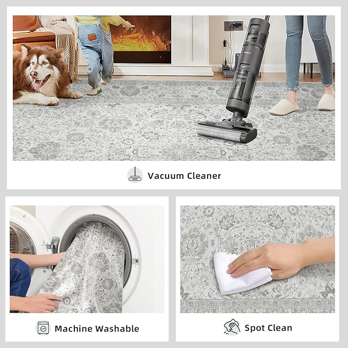 - [Practical Low-Pile]: This thin rug is designed to be 0.2 inches thick considering that it is intended for everyday use. The big rug can be easily placed in under furniture and entryways, and won't obstruct doorways. Made from enhanced synthetic durable fibers, these faux wool rugs are not only soft to the touch but also durable and long-lasting.