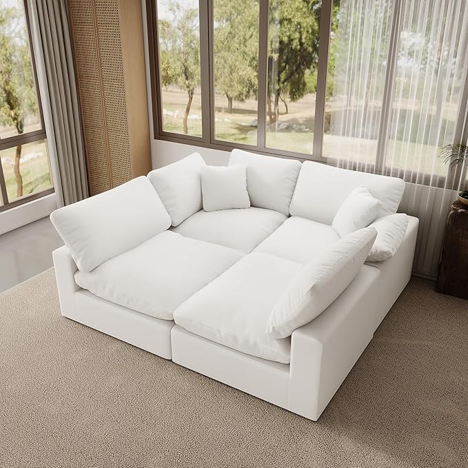 Oversize Cloud Modular Sectional Sofa,Chaise Down Filled Comfort Sofa Detachable Couch Cushion Covers for Living Room Apartment,White