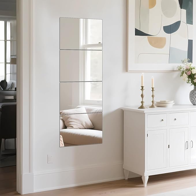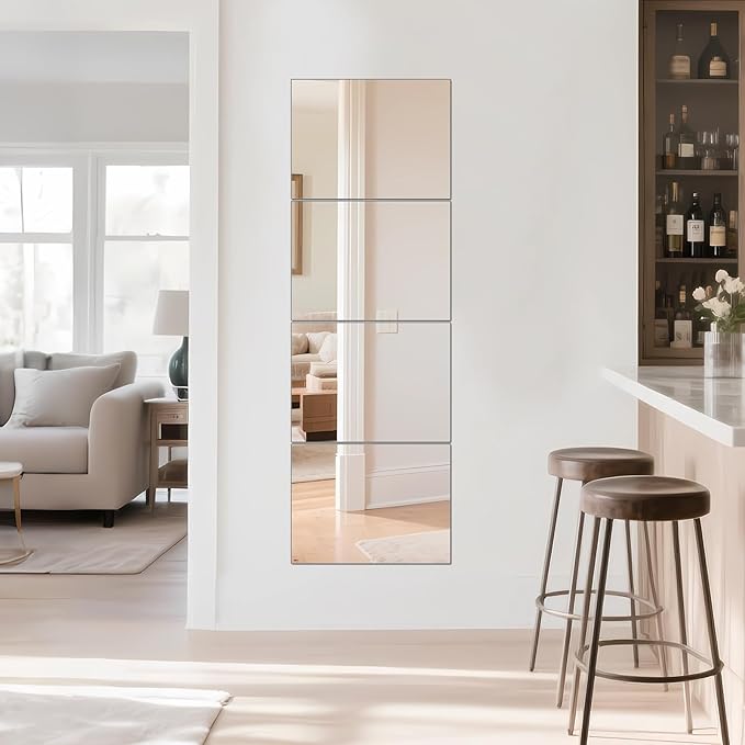 Ruomeng Full Length Wall Mirror Tiles - 12" x 16" x 4Pcs Frameless Full Body Mirror Tiles Wall Mounted Mirror for Home Gym Vanity Bedroom, Living Room