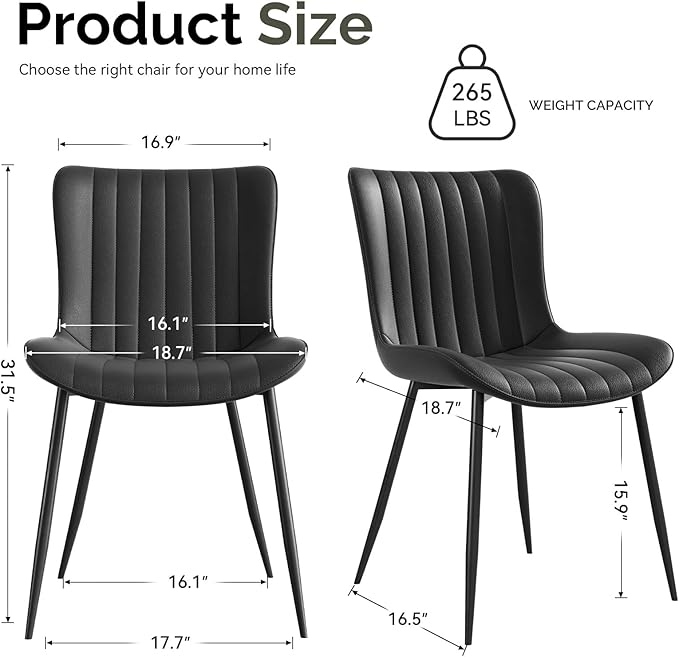 - 5.Homeokay Dining Chairs Product Info: The Dining Chair size is18.7"D x 17.7"W x 31.5"H. Maximum load is 265 LBS