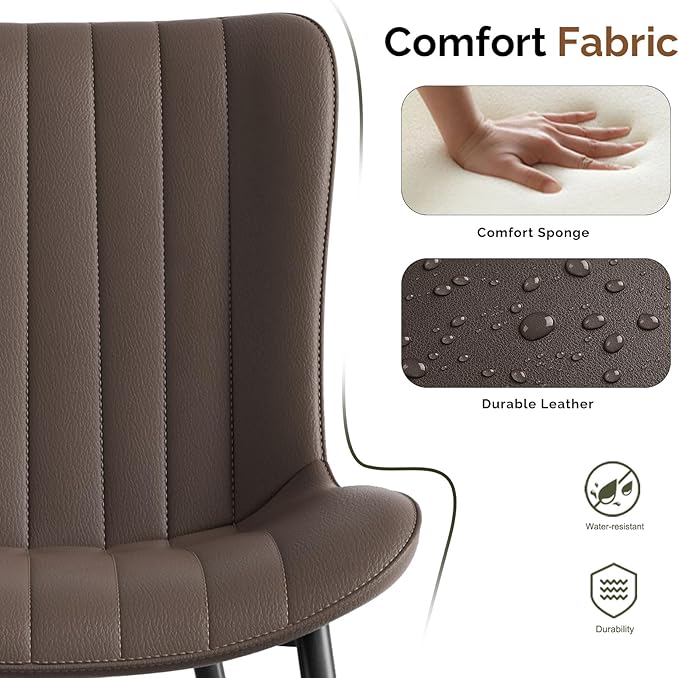 - 1.Dining Chair’s Material: Our modern dining chairs with faux leather and soft foam for ultimate comfort. And crafted with sturdy wood and metal, it ensures durability for dining rooms, offices, bedrooms, and outdoors. Perfect for families with children due to its easy mobility and lightweight