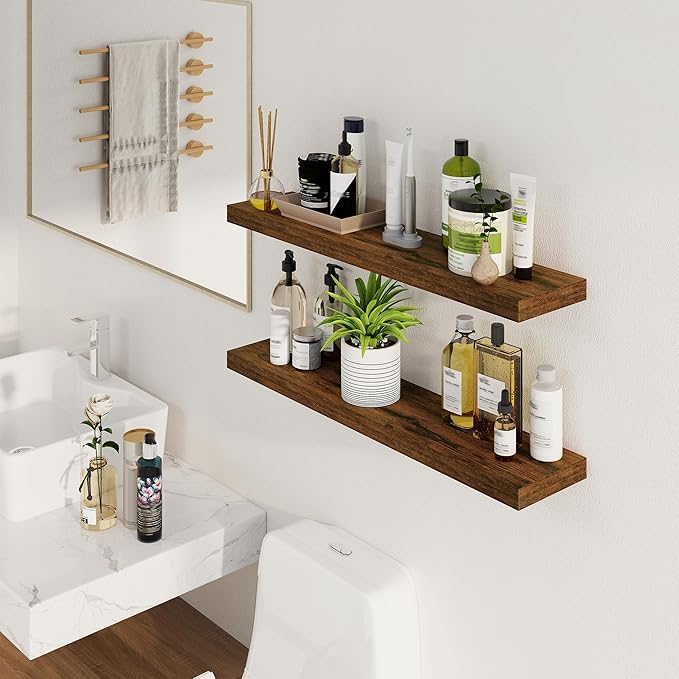 Fun Memories Floating Shelves for Wall, 36Inch Floating Shelves Set of 2, Hanging Shelf with Invisible Brackets, Bathroom Shelves for Living Room, Bedroom, Kitchen- Brown