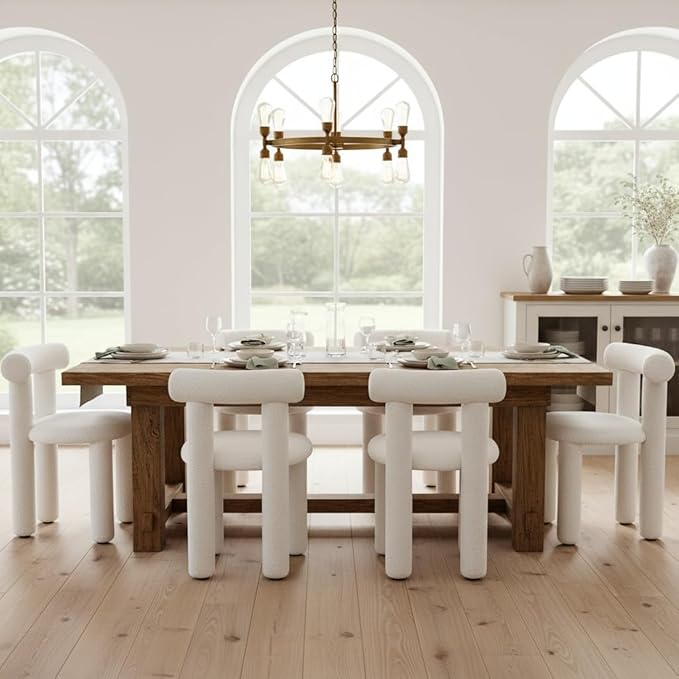 DUOMAY Modern White Boucle Dining Chairs Set of 8, Sherpa Upholstered Kitchen Chairs Armless Barrel Back Dining Chair, Living Dining Room Chairs, Reception, White