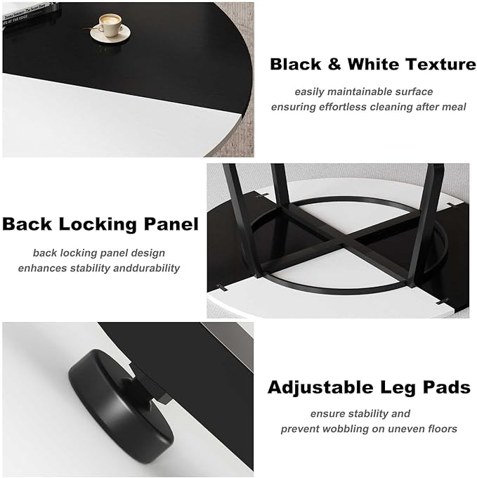 - 【VERSATILE CONTEMPORARY ACCENT】: The sleek white and black round kitchen dining table effortlessly enhances a variety of modern interiors, accommodating 4-6 chairs. Ideal for compact kitchens, dining areas with limited space, as well as outdoor settings like decks and patios, or even as a chic addition to coffee shops and offices. This stylish mid-century-inspired round table comfortably seats 4-6 individuals, making it perfect for intimate gatherings and cozy settings.
