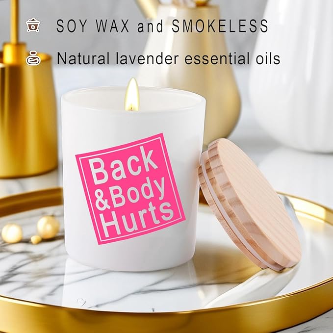 BFJLIFE Candles Gifts for Women Funny Unique Christmas Birthday Gifts for Sister Bestie Best Friend Her Wife Girlfriend Stocking Stuffers for Women Back and Body Hurts Lavender Scented Soy Candle