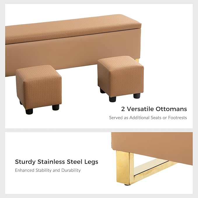 - Includes Two Extra Ottomans: As a special bonus, this set comes with two small ottomans. Simply open the flip-top lid to reveal additional storage space where you can store magazines, blankets, pillows, and more, while using the stools for seating.