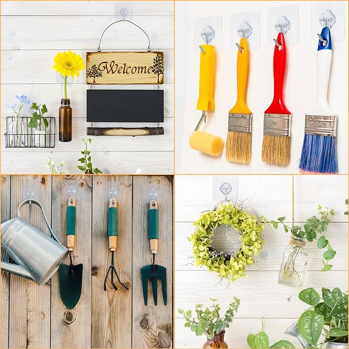 - Utility Hooks: The transparent design is perfect for your various home decoration styles. Heavy-duty wall hooks support up to 33lbs on smooth surfaces; Widely used in kitchen, living room, bedrooms, classrooms, garages, offices, bathrooms, closets, decorations, ceiling hooks, coat hooks, key hooks, plant hook, bathtub towel hook, picture hooks.
