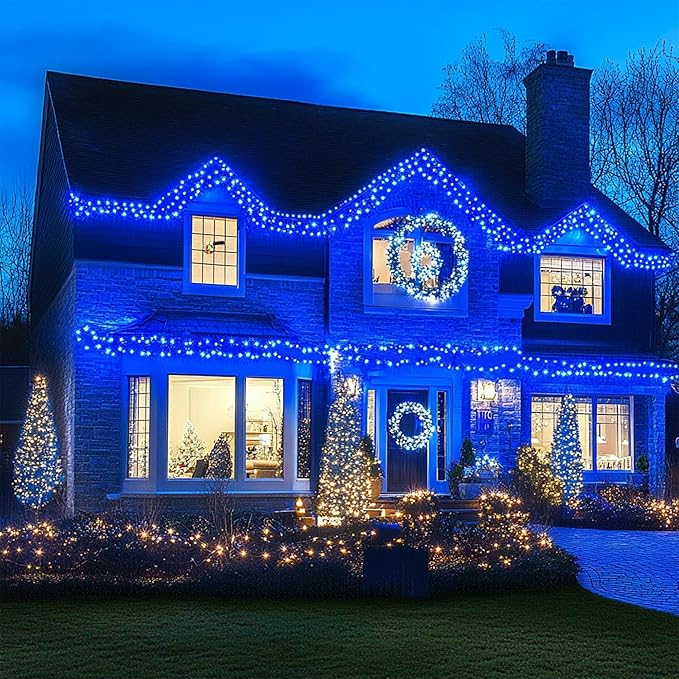 - 【Great for Halloween and Xmas】Our blue fairy lights is waterproof, so you can use them as Halloween and Christmas decorations outdoor. The leading wire is 16.4 feet, which allow it to be connected to an indoor outlet, great for Halloween, Christmas party and display.