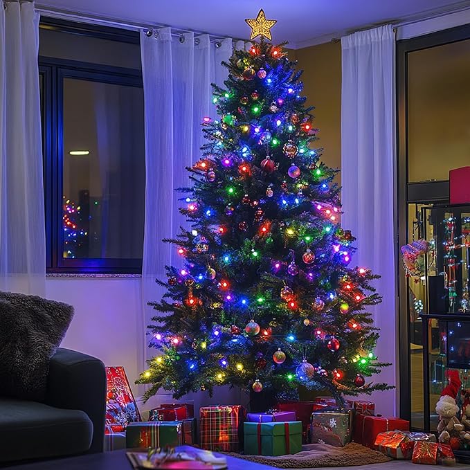 - 【8 Modes】This colored Christmas tree lights have 1 steady on mode and 7 flashing modes: combination, in waves, sequential, slo-glo, chasing/ flash, slow fade and twinkle/ flash, very beautiful. It can be decorated for Xmas on its own or paired with any Christmas decorations to greatly add to the festive atmosphere!