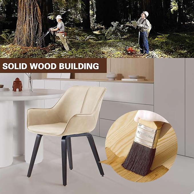 Upholstered Dining Chairs Set of 2, 4 & 6 - Faux Leather Accent, Living & Kitchen Dining Chairs - Comfortable Reading/Arm Chairs - Mid Century Modern Style (Beige, 2)
