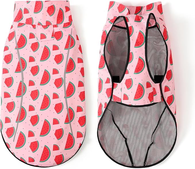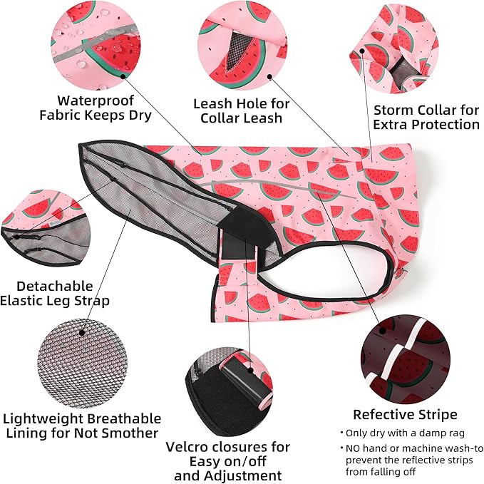 Mile High Life Dog Raincoat, Adjustable Waterproof Reflective Rain Jacket for Small Medium Large Dogs, Lightweight Breathable Pet Rain Coat with Leash Hole(Pink Watermelon,M Chest 26-32")