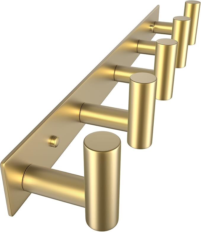VAEHOLD Hat and Coat Wall Mount Rack - Hooks for Robes, Bags, Keys, and Towels - Bathroom Towel Hanger Organizer (Gold, “T“ Shape 5 Hooks 1 Pack)