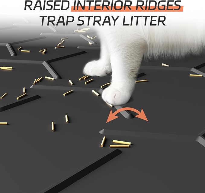 - Extra large size: 22 "x34"/86*56cm, covers a wide range of areas, fits one large or tow small litter boxes. The large litter mat can collect most of the litter and urine. At the same time, provide more space for your pet to move around