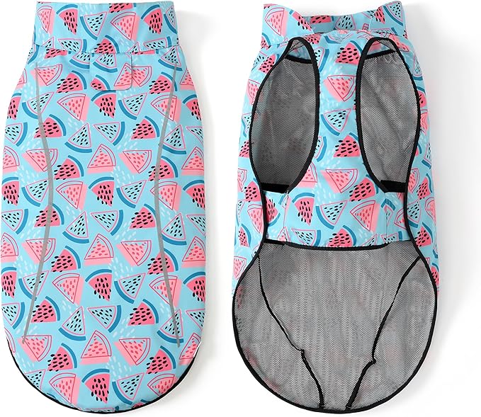 Mile High Life Dog Raincoat, Adjustable Waterproof Reflective Rain Jacket for Small Medium Large Dogs, Lightweight Breathable Pet Rain Coat with Leash Hole(Light Blue Watermelon,XS Chest 17-23")