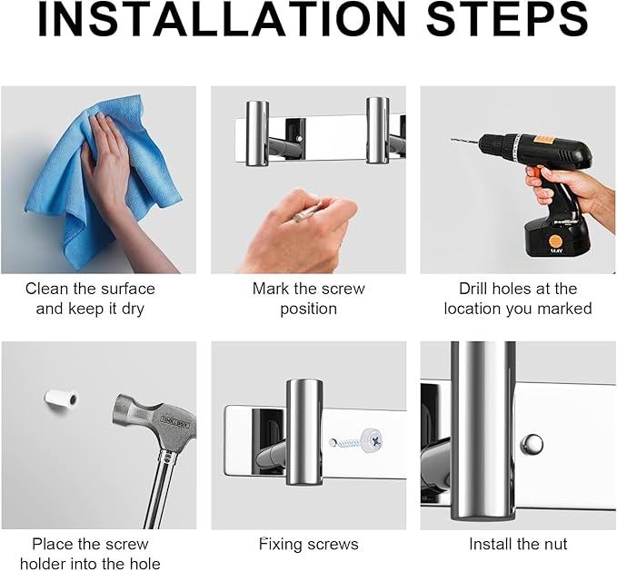 - Versatile Use: This Polished Chrome Row Hook Coat Rack for various locations, including bathrooms, kitchens, living rooms, entrances, and offices. Use it to hang towels, kitchenware, coats, hats, jackets, wallets, keys, and more, adding functionality and organization to your space.