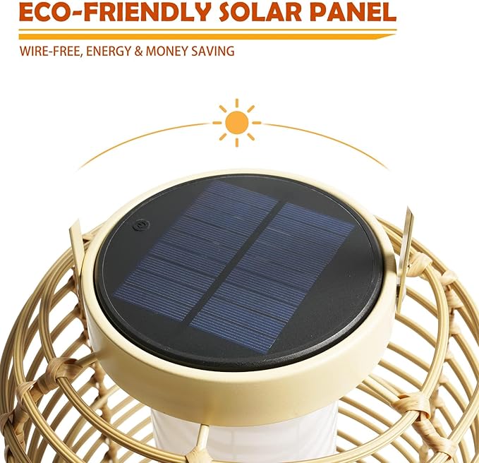 - BOHO STYLE: Our hanging solar LED lantern is the perfect rustic addition to your outdoor space. Made of natural toned wicker, its airy design allows warm light to shine through and create a charming atmosphere
