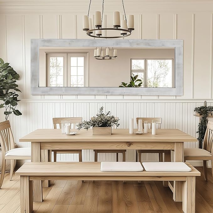 - WOODEN STANDING MIRROR FULL LENGTH: Our 64" x 21" farmhouse mirror transform your house into a charming countryside haven. Made of high-quality natural solid wood, the intricate farmhouse charm details then complement home decor, adding a touch of warmth and character to your home.