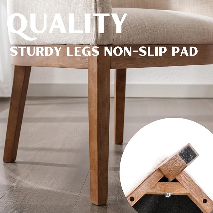 - STURDY AND STABLE: This side chair is well constructed with solid wood frame for excellent stability and upload up to 300LBS. Comes with a non-slip pad to prevent the floor from scratching with an anti-slip effect for sensitive flooring.