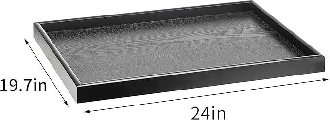 24 x 20 Inches Extra Large Solid Wood Serving Tray for Tea Coffee Table Snack Food Meals Serving Plate Kitchen Party Bar Breakfast Server with Raised Edges Black Wooden Decorative Ottoman Tray