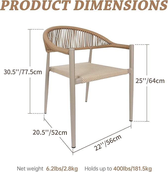 - Versatile Use: Suitable for both indoor and outdoor settings, these chairs are perfect for dining areas, patios, gardens, or even commercial spaces like cafes and restaurants.