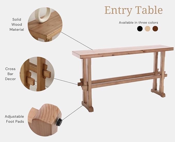 - Solid Wood Integrity: Built with premium solid wood, this entryway table stands strong against daily wear, ensuring lasting stability and resilience that complements any home