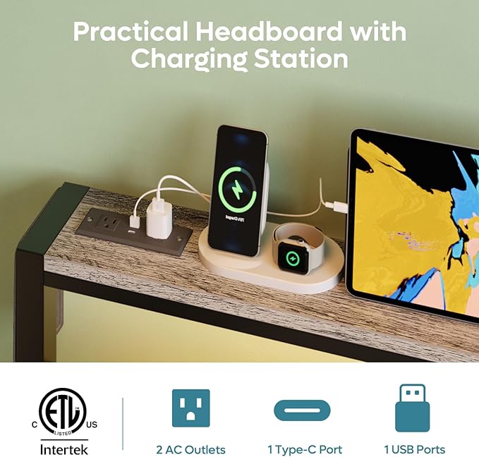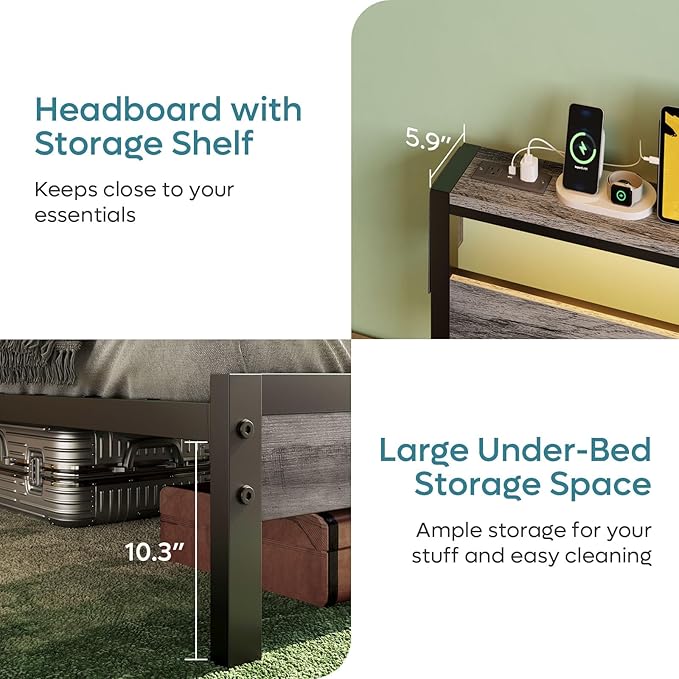 - Special Feature : Convenient Charging Station & LED Light, Headboard Storage Shelf, High Headboard Design, Prevent Mattress Slippage, Sturdy and Stable Convenient Charging Station & LED Light, Headboard Storage Shelf, High Headboard Design, Prevent Mattress Slippage, Sturdy and Stable