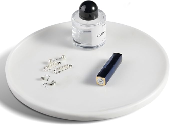 11.8inch Round Marble Serving Tray for Kitchen and Coffee Table, Bathroom Vanity Tray for Counter, White Decorative Catchall Tray for Jewelry, Namib Fantasy