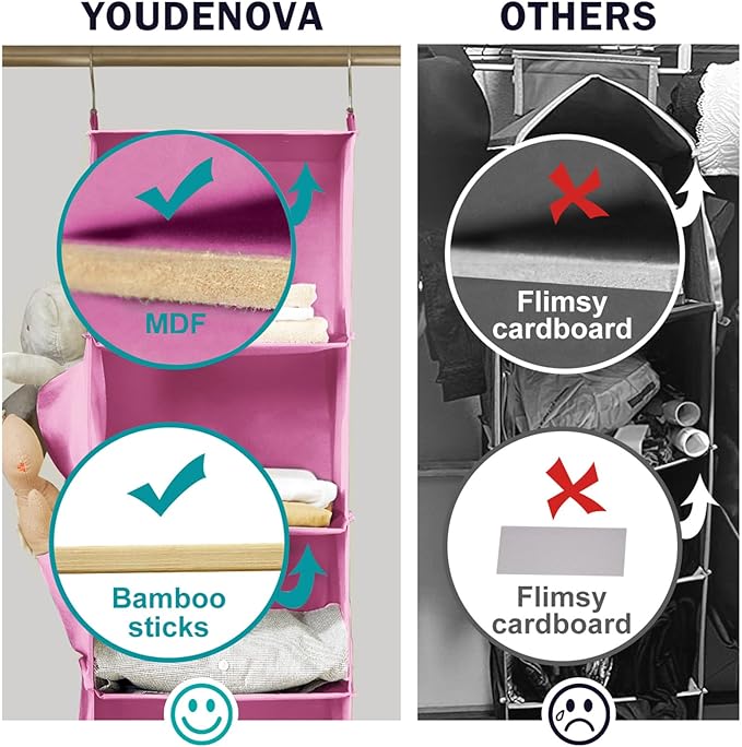 YOUDENOVA Hanging Closet Organizer and Storage, 6-Shelf Closet Hanging Storage Shelves, Light Pink