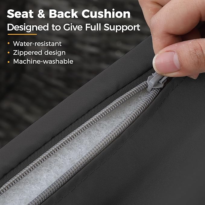 - 【Comfortable Seating and Modern Design】Enjoy ultimate comfort with the 3-inch seat back cushions and ergonomic backrest of this patio furniture set. Designed to provide optimal support for you and your family, it allows for extended hours of relaxation outdoors.