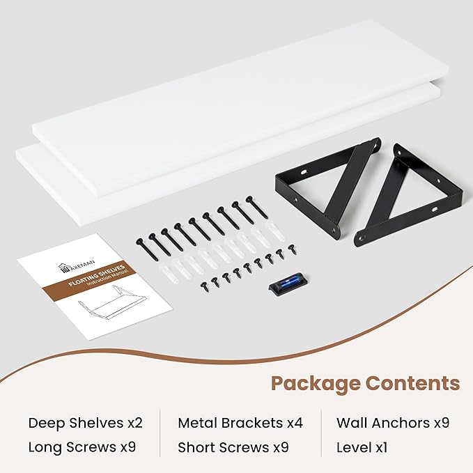 - 8 Inch Deep Floating Shelves - each shelf measures 23.6W x 8D x 5H, 8-inch depth can hold and display more items and decorations, enhancing your personality and lighting up your room.