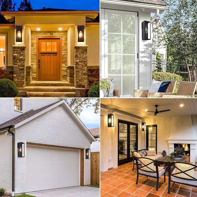 - Versatile & Wide Application: This decorative outdoor sconce is constructed with an elegant regular rectangle frame and solid clear glasses, simple appearance and modern design for the matte black wall lamps can essentially go with different decor, ideal for your front door, entryway, patio, porch, garage, courtyard, backyard, hallway, balcony, garden, corridor, and other indoor or outdoor occasions, bound to be a particularly beautiful addition to your place as well as its practical function