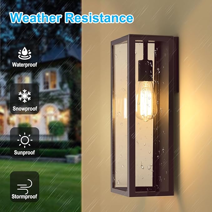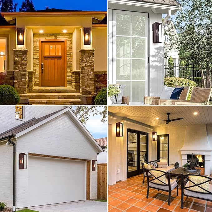- Anti-Rust & Weather Resistance: These outdoor wall lighting fixture are made of high-quality materials and constructed with sturdy glass panels, the surface finished with brown keeps wall lights from rust or corrosion, and clear glass shades prevent water entering the sconce, so that the outdoor wall sconces can adapt to extreme weather such as heavy rain, strong snow, icing, hot weather and so on. Even if placed outdoors for a long time, will still remain bright
