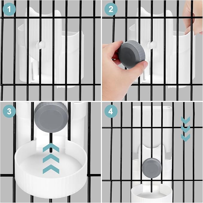 - 【Hanging Design】 Allows to hang the pet feeder and water dispenser freely in the cage at a suitable height according to the size of your pet to prevent their neck discomfort when eat and drink. Perfect for cat, kitten, puppy, rabbit, chinchilla, guinea pig, ferret and other small animals.