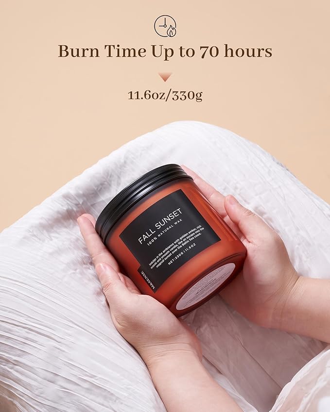 M&SENSE Baltic Amber Fall Scented Candle, 11.6oz Clean Natural Soy Wax Non Toxic Up to 70 Hours Burn Time 2 Cotton Wick Housewarming Candle for Home Scented