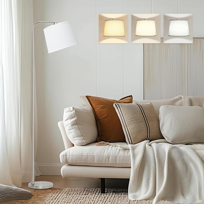 - 【3 Color Temperature】: This floor lamp uses 3CCT LED bulbs with 3 different color temperature settings: 3000k/4000k/6000k (warm light/natural light/daylight)). The softness of warm light brings you a warm feeling and the brightness of daylight white brings you a good reading environment and protects your eyes. You can easily change the color temperature to meet the needs of a variety of different scenes, creating a different atmosphere for the room.