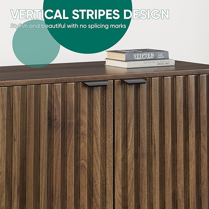 Smuxee Fluted Sideboard Cabinet, Freestanding Walnut Buffet Cabinet with Adjustable Shelf, Wood Storage Cabinet for Living Room, Entryway, Hallway
