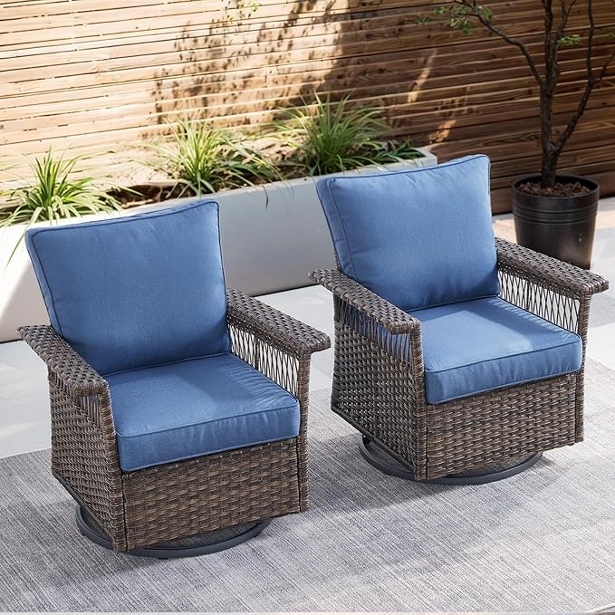 - Stylish 2-Piece Patio Set - This wicker patio furniture set includes two outdoor swivel glider chairs, blending comfort with an elegant design. Ideal for decks, porches, backyards, and balconies, these outdoor swivel rocker patio chairs enhance your outdoor space with both style and functionality