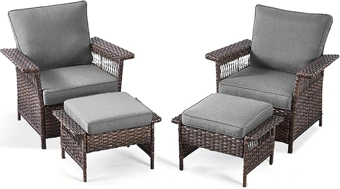 - Stylish 4-Piece Patio Set - This wicker patio furniture set includes two outdoor chairs and 2 ottomans, blending comfort with an elegant design. Ideal for decks, porches, backyards, and balconies, these patio chairs enhance your outdoor space with both style and functionality