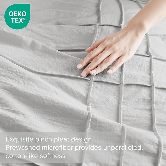 Comfort Spaces Silver Twin Size Comforter Set - 2 Pieces Pintuck Pleated Bedding Sets, All Season Lightweight, Extra Softness Pre-Washed Microfiber Twin Bed Set, Shams, Twin