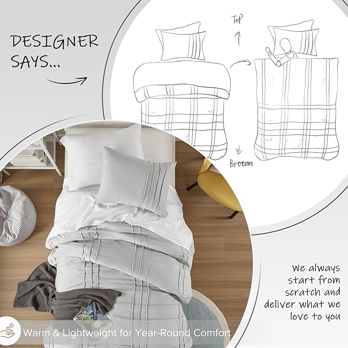 - Modern Farmhouse Comforter - Twin size bed comforter displays a charming farmhouse design with a modern twist. The elegant pintuck pleated accent creates an inviting atmosphere in any bedroom, a perfect blend of rustic charm and contemporary allure