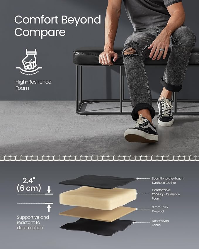 - [Comfort at Every Sit] Glide your hand over the smooth cover, then sink into the supportive 2.4" (6 cm) thick, 25D high-resilience foam. This padded bench provides a comfortable seat that endures, standing the test of time without deformation