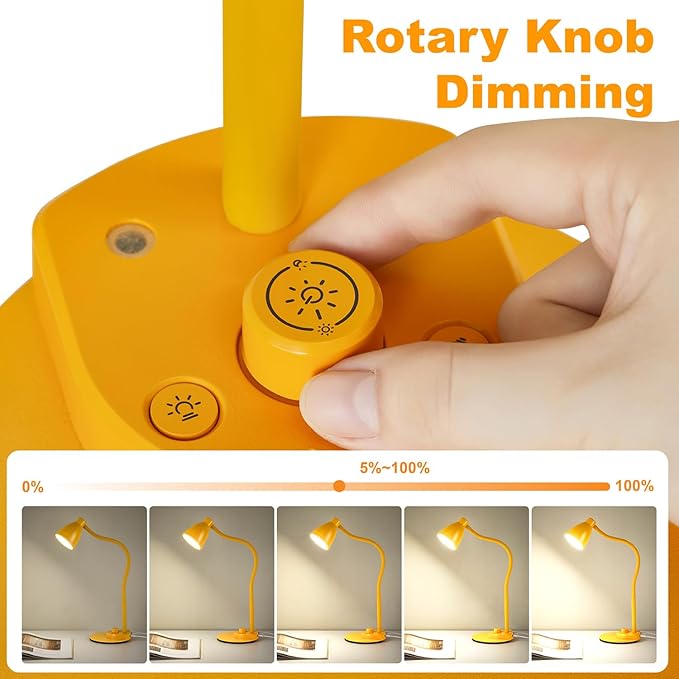- 3 Color Modes and Rotary Knob Dimming: Table lamp is controlled by knob switch and key switch. 1. Power on and off: press the rotary knob button, 2. Change color mode: Press the button on the right to adjust the color: Natural light - White light - Warm light. 3. Adjust the brightness: Turn the rotary knob to adjust the brightness. You can adjust the brightness of any color modes.