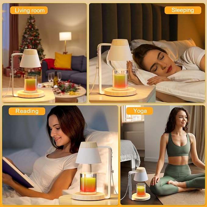 - ⏱️【2/4/6H TIMING FUNCTION FOR SAFETY】-With 2 * 50Watt halogen warming bulb (included), the Candle Warmer Lamp with Timer provides a safe and eco-friendly way to enjoy candles. No open flame, no smoke, no soot, no pollution, and reducing fire risk. Say GoodBye to candle flames, smoke, and soot. The candle lamp warmer is cleaner and more efficient. An ideal choice for sustainability and safety.