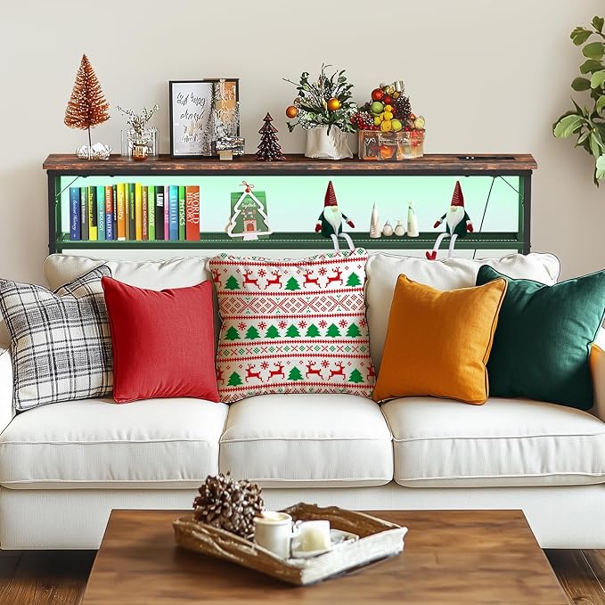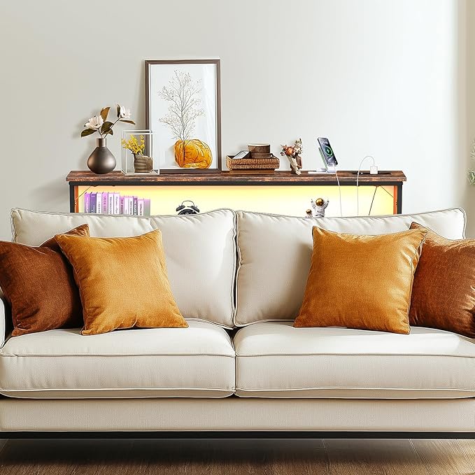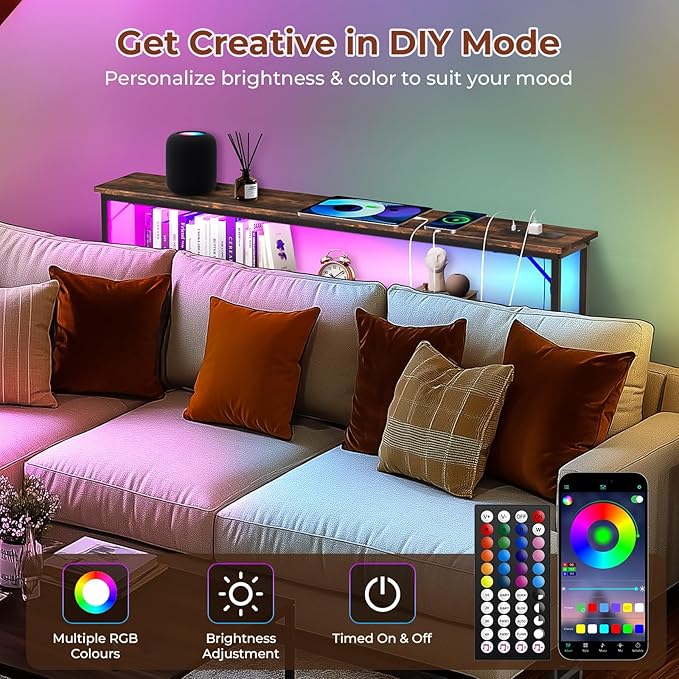 - 【Colorful Mood Lighting】 The rustic brown couch table behind sofa features adjustable lighting with customizable colors and 8 dynamic motion modes that sync with music, creating a lively and immersive atmosphere