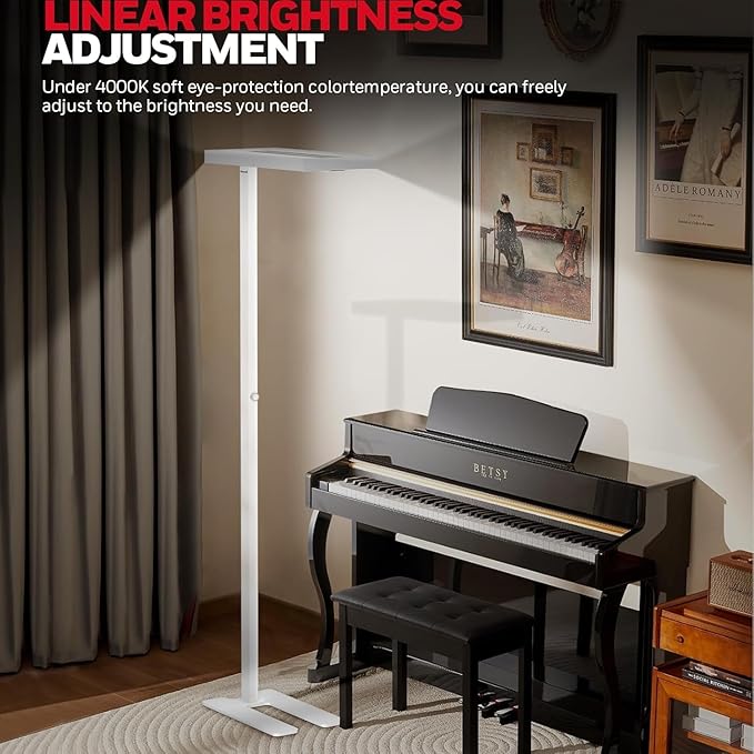 - Professional Eye Protection Bright Floor Lamp - The tall floor lamp featuring Sunturalux 912 full-spectrum LED beads that closely mimic natural light. Designed to eliminate glare and blue light, it minimizes shadows, ensuring a comfortable viewing experience. With a high color rendering index (CRI > 98) and an impressive 16,000 lumens, this lamp allows you to see every detail with precision and reduces eye fatigue while revealing the most accurate colors. Perfect natural daylight office floor lamp Ideal for any setting—be it your living room, study, office, or piano room—this lamp is the perfect companion for work and relaxation.
