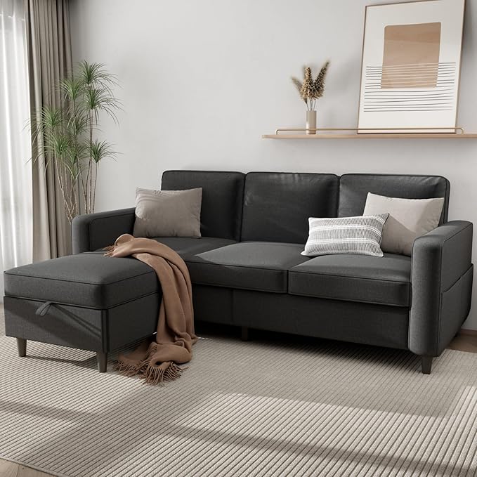 Sectional Couches for Living Room - Deep Seater Couch Living Room-Comfy L Shape Modular Sofa,with Storage Chaise-Washable Covers-Suitable for Living Rooms,Apartments,Rooms and Offices-Dark Gray